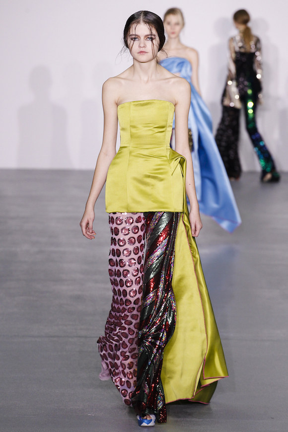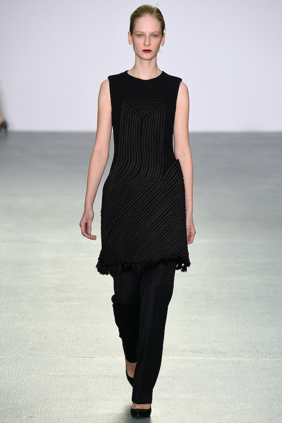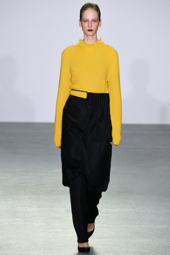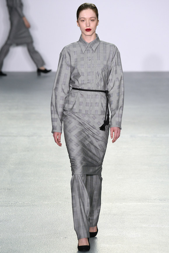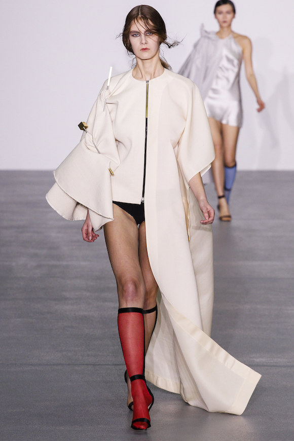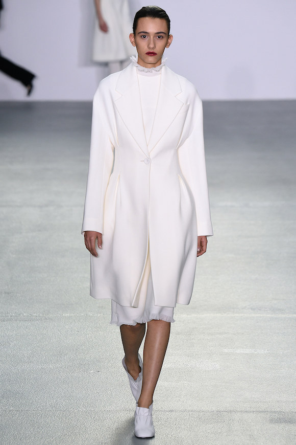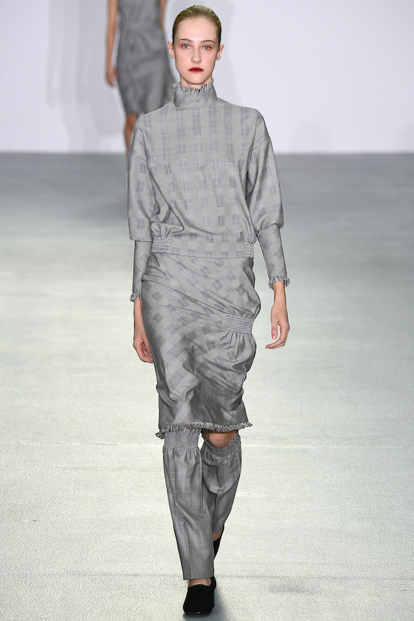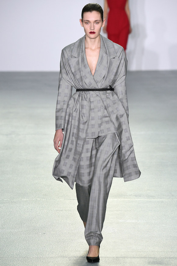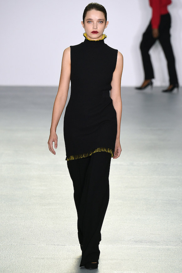 和 2016 春夏系列发布时一样,韩裔设计师 Jackie Lee 的个人品牌 J. JS LEE 又一次为伦敦时装周做了开场秀。不过,比起上一次带着些收敛的“温柔”,这一次发布秋冬系列的 J. JS LEE 显得更有自信和力量——开场就连走了三身饱和度极高的红色调设计,观众想要不被吸引都难。而随后出现的全黑、全白、明黄及格纹,也都给人以色彩厚重,视觉冲击大的感觉。