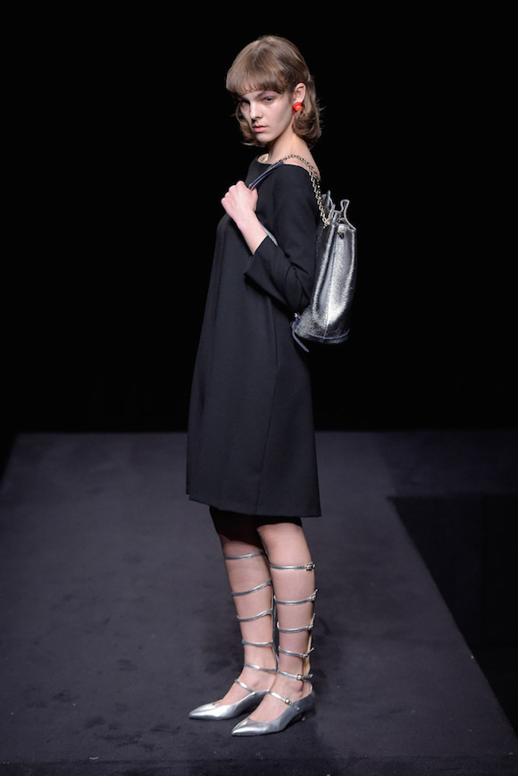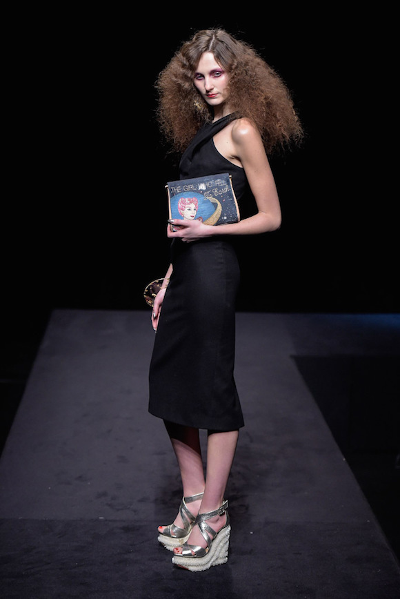 这一季的鞋子和包袋基本是在品牌经典款的基础上,通过使用有反光性的材料,比如水钻、丝绒等,来让鞋子变得较之前不同。同时,这一季还出了不少可爱的包袋商品,比如宇宙飞船造型的背包、印着相关主题绘画的手袋等。但不得不说,最终,整场秀还是难免给人以形式上用力过猛的感觉。事实上,那些在追光灯下闪着金光的包和鞋子,真的有点“过于耀眼”了,甚至于不少观众想看清楚都觉得有些难。