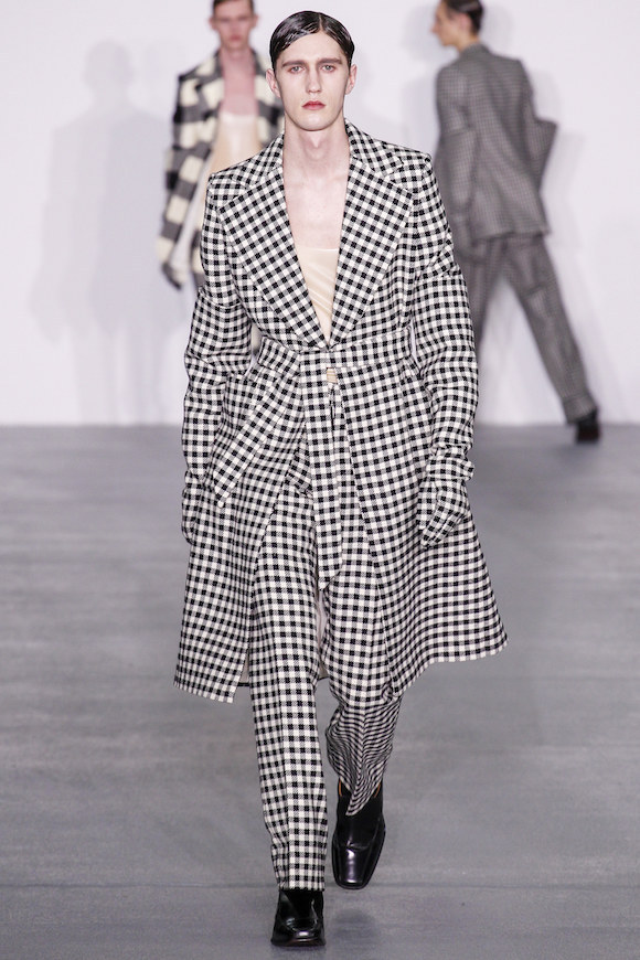 如果说有遗憾,那应该会是在版型上。整个系列显得较中规中矩,基本顺附着近两年的流行大势,不过实穿性很高。设计师表示,这种看上去略微带着点廓形宽版的设计,是取灵感自维多利亚时期的建筑和家具,通过对 80 年代末的版型进行改良后完成的。