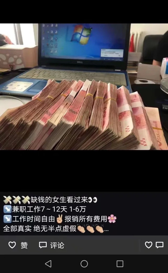 林颖原本能就此打住,可她太渴望这笔钱了,尤其是看到中介在朋友圈发布了一捆捆的人民币照片后,她决心冒险。林颖向中介隐瞒了无性经历的情况后,很快将刚刚交往的男友约出来,解决了这个问题。