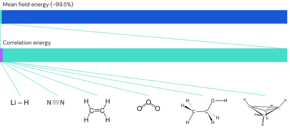 把 FermiNet 应用到更大的分子上,从氢化锂开始,一直到双环丁烷,观察到的最大的系统,有30个电子。对于最小的分子,FermiNet 捕获了令人震惊的 99.8% 的耦合团簇能量和从单个斯莱特行列式所获得的能量之间的差异。对于丁烷,FermiNet 也捕获了这种相关能量的97% 或者更多,这和传统方法相比是一个巨大的提升。