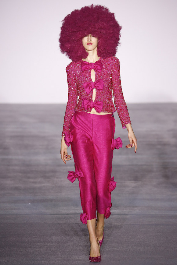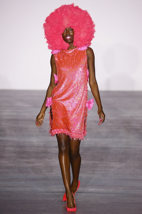 34 个模特,每人一个专属颜色——她们需要穿戴同色的蘑菇云假发、亮片套装以及高跟鞋,绕场一周。对了,她们的口红和指甲油颜色也是专属色。