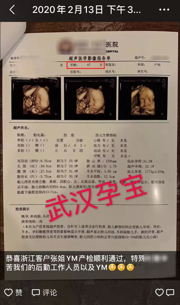 在代孕母亲的产检报告上,年龄一项赫然写着37岁、39岁、44岁、47岁……