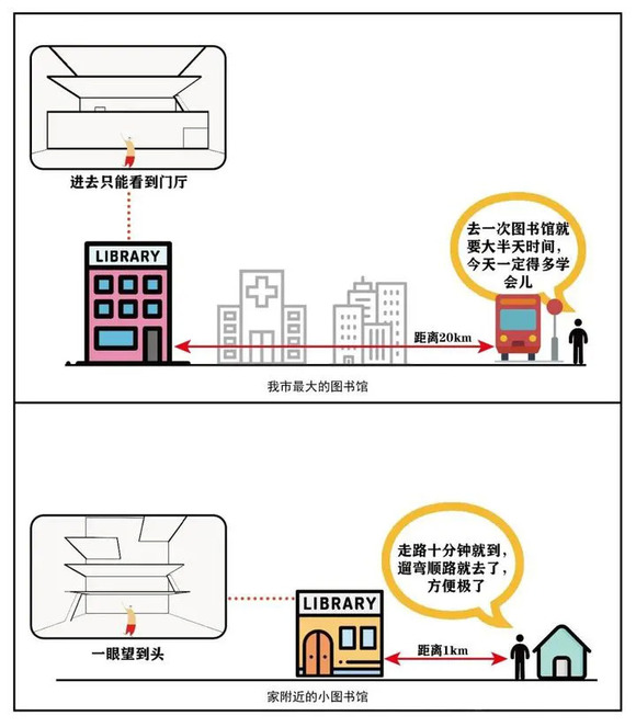 社区图书馆的优势很明显:距离上近便,步行几分钟就能到达;书不会很多,可以兼顾常用图书和文化特色;开放时间更贴近实际需求:放学与周末时间。