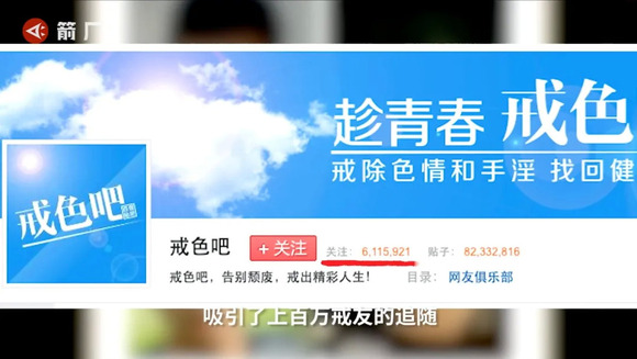 2003年创建至今,百度“戒色吧”吸引了超过六百万的关注者。