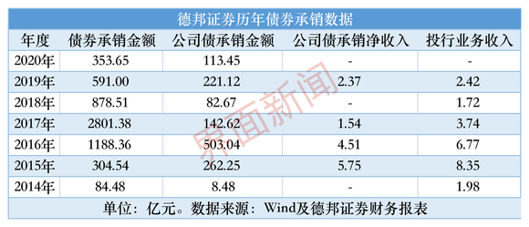 债券承销业务减速,亦体现在德邦证券营收上。
