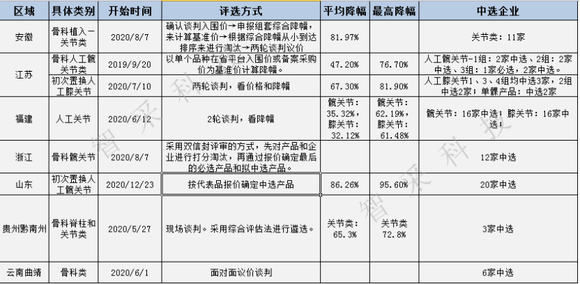 附各地关节类带量采购降幅情况(数据来自智采网):