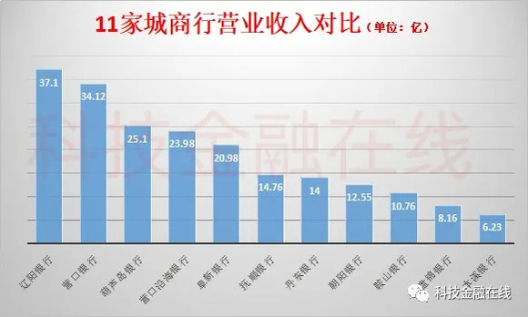 数据显示,在辽宁欲合并的12家城商行中,辽阳银行2019年营业收入为37.1亿,净利润11.07亿,营收和净利润都是最大的。资产规模最大的营口银行2019年收入34.12亿,净利润为6.43亿。在12家银行中,这一数据已经算是亮眼。阜新银行2019年收入20.98亿,净利润4亿,营口沿海银行收入为23.98亿,净利润为8.01亿。