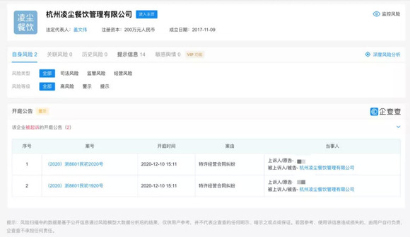 2021年1月,张青带着浙江省杭州市江干区人民法院给出的民事裁定书,要求农村商业银行协助冻结被告杭州凌尘餐饮管理有限公司的银行存款人民币112552元,或查封、扣押其相应价值的财产。