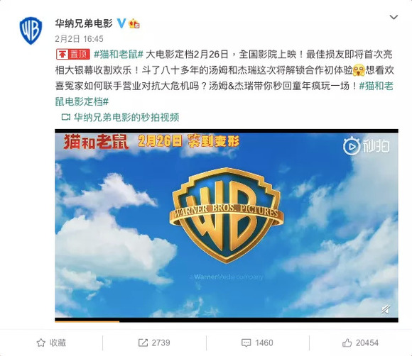 比如在院线已恢复的中国,华纳显然是希望尽可能保证院线的票房收入。此前《神奇女侠1984》在中国内地就比北美提前上映一个星期,华纳的《猫和老鼠》真人版也于近日宣布内地定档2月26日,再次比北美早了一个星期。