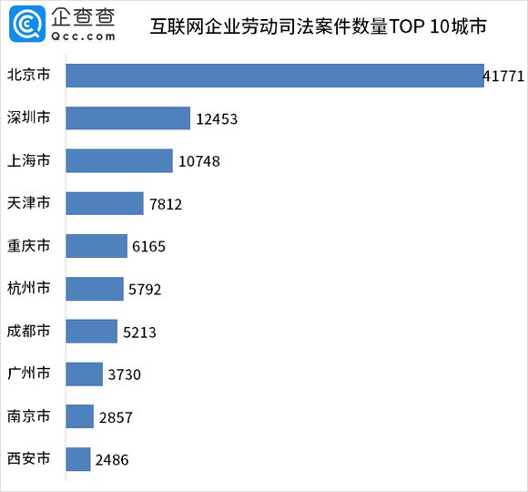 深圳以1.25万件劳动司法案件位列第二,上海以1.07万件位列第三,深圳和上海也都是互联网企业的聚集地。
