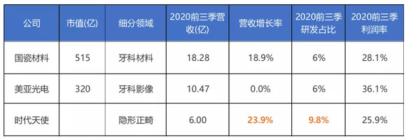目前中国牙科领域主要有四家上市公司: