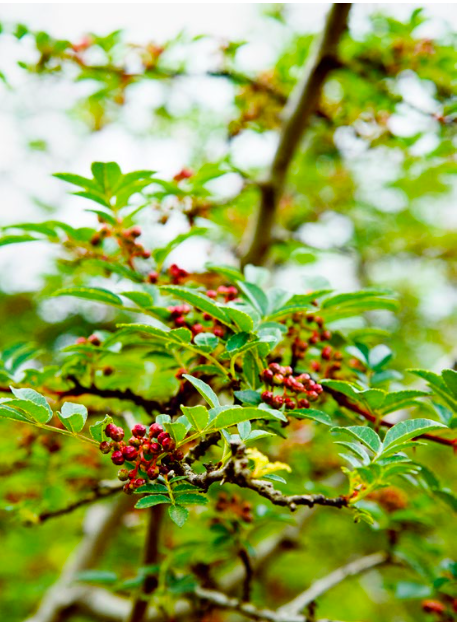 和邻居湖南省与贵州省一样,川菜最著名的个性就是热烈奔放,大量使用辣椒调味。不过,川菜的火爆性格,还源于一味独特的调料,就是让你唇齿酥麻的花椒。在四川的乡村,一家家木梁农舍的屋檐下,全都垂挂着大串大串的辣椒,就像中国人过春节时要挂的红鞭炮。辣椒在阳光下晒干,呈现血红的颜色与光泽;或者用盐和酒浸泡,变成鲜红色,真正是“川菜之心”。