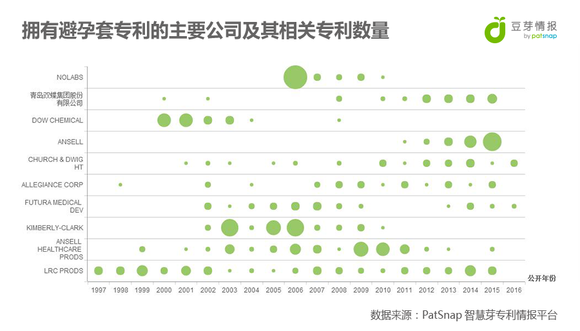 下图则是生产避孕套的主要公司,及其相关专利数量。