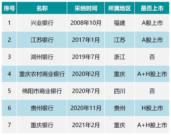 从银行类别来看,1家为全国股份制银行,1家为农商行,其余5家均为城商行。可见,城商行是赤道银行的“主力军”。