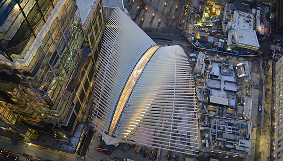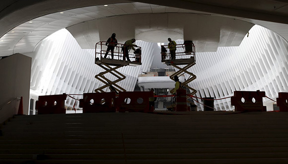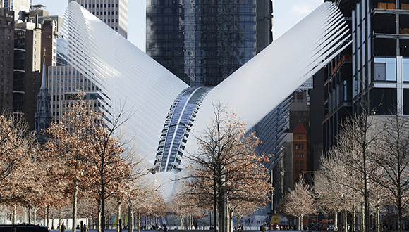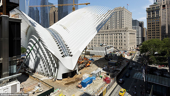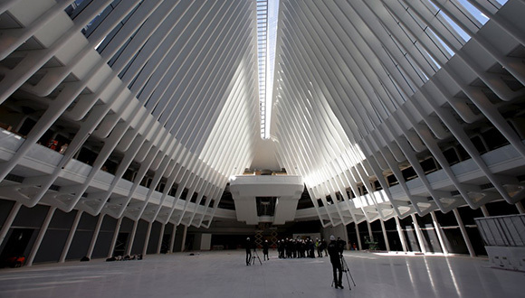 纽约世贸中心交通枢纽站,这个建立在昔日911废墟上、历经12年建设、斥资40亿美元费用的大项目终于向公众开放了。整个工程花费最初22亿美元预算的两倍,并且比预计推迟了七年。