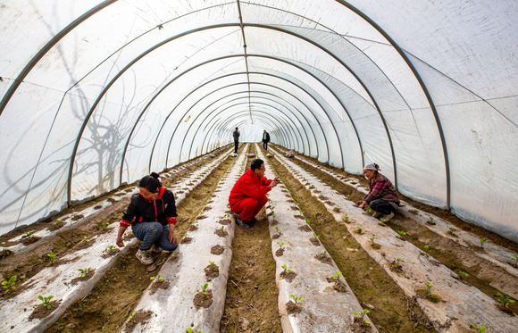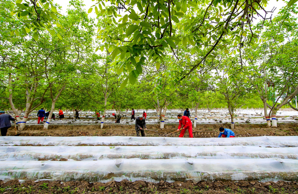 中国石油驻村工作队和村民一起忙碌在希望的田野上。图片来源:中石油