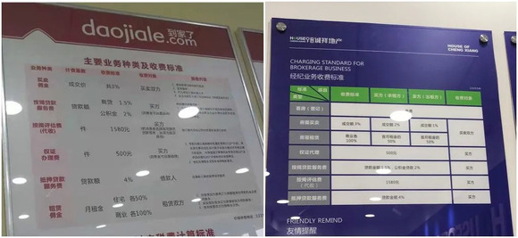目前,到家了中介门店内公示的收费标准是:佣金为成交价3%,其中业主1%,买方2%。此外贷款服务费为贷款额的1.5%-2%(商贷1.5%,公积金2%),按揭评估费1580元,权证办理费500元。