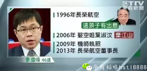 生于1970年的张国炜,是张荣发的二房独子。他从美国加州大学毕业时,长荣航空已进入快速发展期。他之后的一切也都围绕着一个“空”展开:爱空姐、娶空姐,爱飞行、修飞机、开飞机,最终因为“空姐”走到今天的结局。