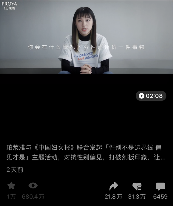 朋友圈转发量21W+;公益圈、学术圈、广告圈多圈层引爆;微博品牌TVC转评赞突破16W+……珀莱雅靠着一条短片,成为这个三八节品牌营销的最强黑马!