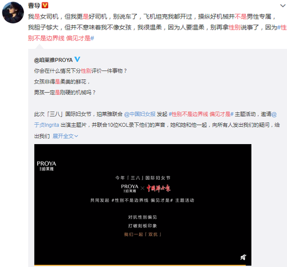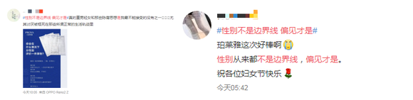 对此,多圈层KOL在话题下进行深度互动,进一步增强各领域人群对 #性别不是边界线 偏见才是# 这一主张的认知与认同。李银河、橙雨伞为代表的学术大佬的也纷纷加入讨论,探讨性别偏见背后的深层原因,从KOL自身视角出发,分享其对“性别平等”的看法,由此,有了专业人士的专业背书,这场运动更添了几分深度与严谨,更具有社会性与话题度。