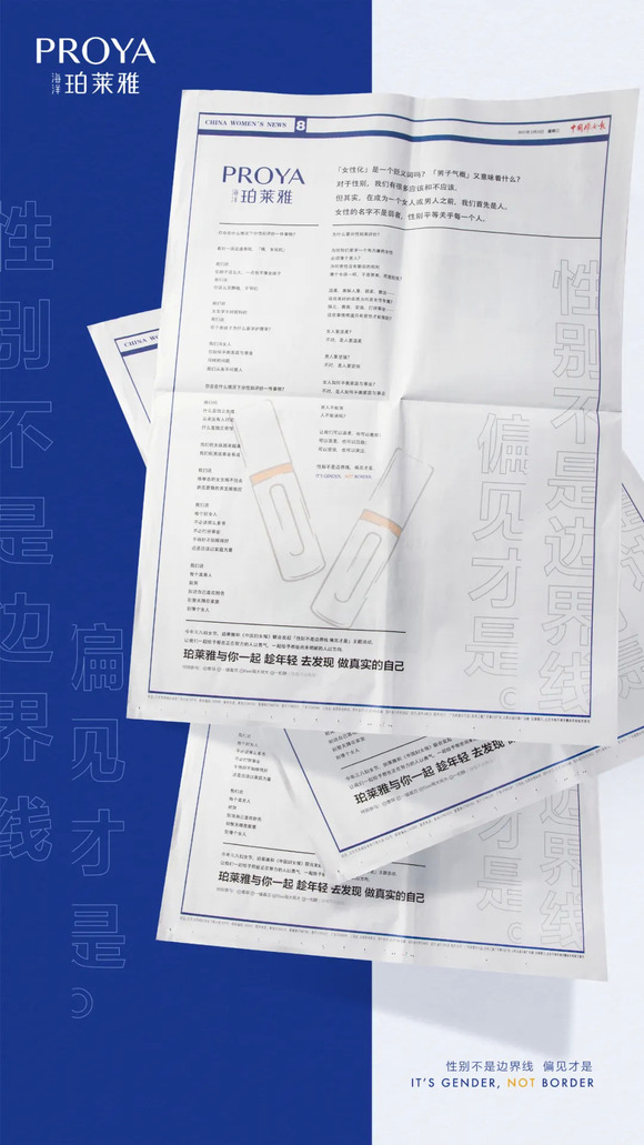 为了进一步增强#性别不是边界线 偏见才是#话题影响力,珀莱雅此次再度与中国妇女报倾情联手,并成功登上妇女报的报纸版面,由此让更多中国女性听见珀莱雅的声音,拥有勇气和力量直面“不同”,勇敢做自己。