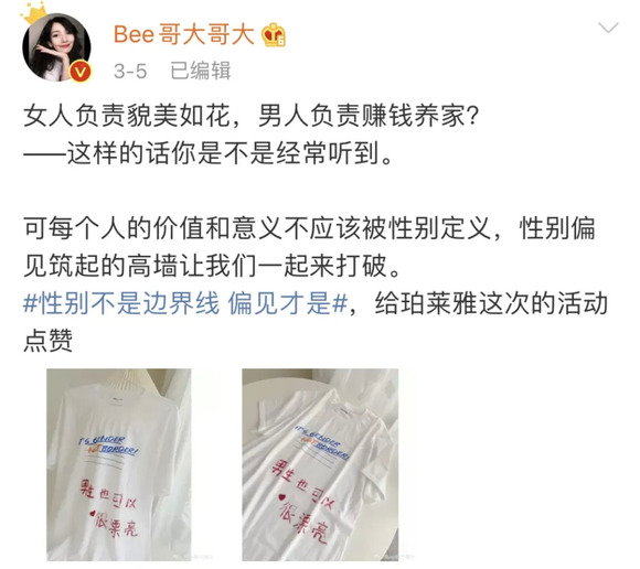 另一方面,珀莱雅还联动各领域KOL为#性别不是边界线 偏见才是#话题发声。其中,有包括“一罐寡言”、“Bee哥大哥大”在内的美妆情感类博主,以感性的方式分享自己对于两性偏见的独特感受:“每个人的价值和意义不应该被性别定义,性别偏见筑起的高墙让我们一起来打破”“从人格觉醒到性别觉醒,我们能做的还有很多”“如果允许世界斑斓,请为与众不同鼓掌”“男生也有脆弱的权利”“我们在生活中恣意绽放的样子,比性别更值得被看见”......在这个过程中,人们卸下心房,分享脆弱又或是伤痛,彼此鼓舞振奋播撒勇气传递力量,于不知不觉中启蒙着整个社会的性别认知,打破那些显性又或是隐性的偏见与束缚。