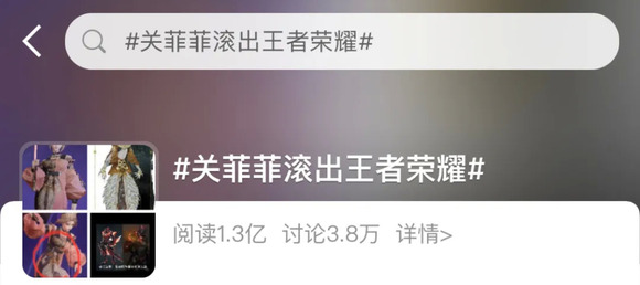 微博上,#关菲菲滚出王者荣耀#的话题阅读量达到1.3亿,春节前后,关菲菲一度被骂上微博热搜,这是《王者荣耀》的游戏策划从未有过的“殊荣”。如今,关菲菲在王者玩家中甚至有一个称号:网易卧底。