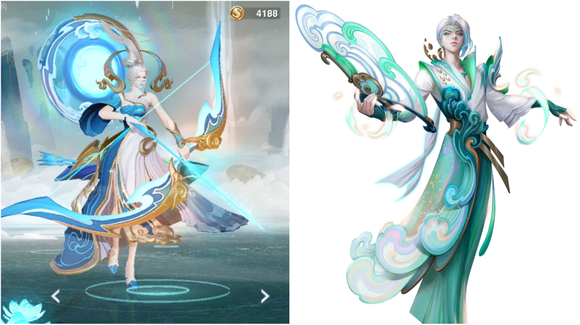 就如李白的凤求凰皮肤虽对发型与服饰进行了大刀阔斧的改动,但玩家依然认得英雄身上那份超凡脱俗的洒脱感;孙悟空的至尊宝皮肤更是从原皮的猴形态变成了人形态,但英雄身上的桀骜与不羁让玩家相信他就是流传千百年的齐天大圣。