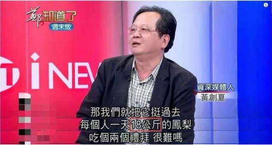 台湾资深媒体人黄创夏经过精密计算后,得出结论,“每人每天吃18公斤菠萝”,吃上两周,就解决问题。
