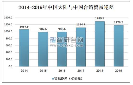 具体反映在贸易逆差上,近3年来,大陆对台湾的贸易逆差均超过了1000亿美元。