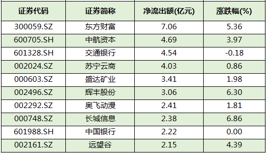 东方财富(300059.SZ)、中航资本(600705.SH)、交通银行(601328.SH)净流出资金量则居个股前三位,分别净流出7.06亿元、4.69亿元、4.54亿元。值得一提的是,上述三只个股也不太受主力欢迎,其主力净流出额分别为4.47亿元、3.60亿元以及4.90亿元。