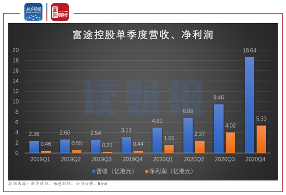 图1:2019年一季度至2020年四季度富途控股单季度营收、净利润