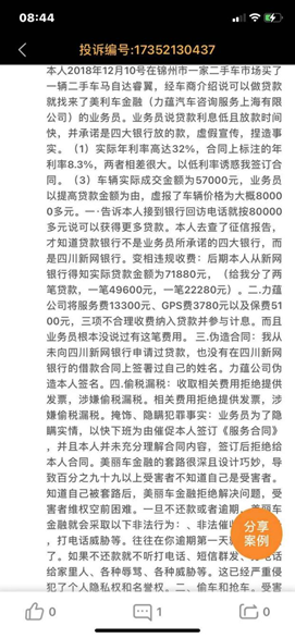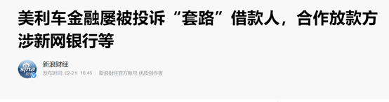 美利车金融屡被投诉“套路”借款人,合作放款方涉新网银行等类似事件也不时见诸报端。