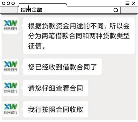 后来该用户查询征信报告后,才知晓这笔贷款来自新网银行。“我从未向新网银行申请过贷款,也没有在新网银行的合同上签署过自己的姓名”,上述这位消费者表示。