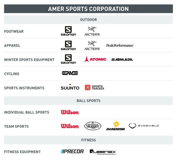 2019年,安踏集团以46亿欧元的价格收购了亚玛芬集团(AMER SPORTS),也获得了其旗下的一系列体育品牌。在亚玛芬这边,像FILA、安踏主品牌那样「能打」的品牌还有三个,分别是始祖鸟Arc'teryx、萨洛蒙Salomon和威尔胜Wilson。