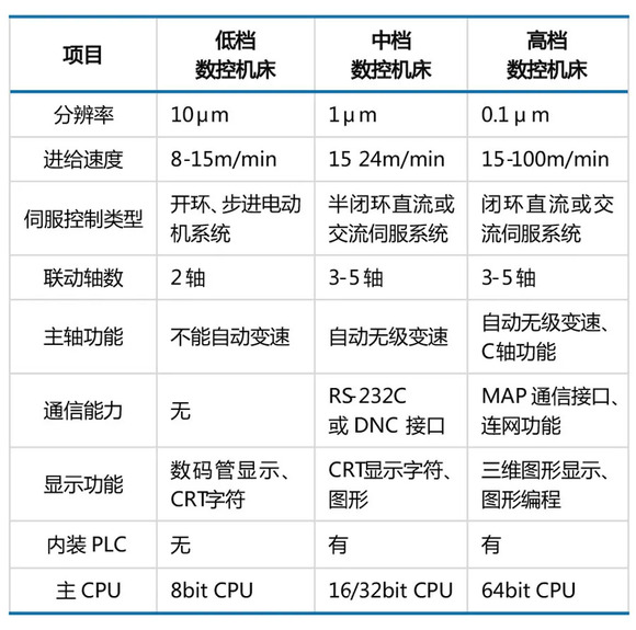 根据数控机床加工工艺方法不同,可以分为金属切削类数控机床与传统的车、铣、钻、磨、齿轮加工相对应的数控机床,有数控车床、数控铣床、数控钻床、数控磨床、数控齿轮加工机床等。根据数控机床的性能不同,可以分为高档数控机床、中档数控机床、低档数控机床。高档数控机床具有高速、精密、智能、复合、多轴联动、网络通信等功能。