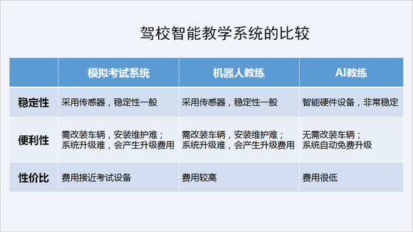 智能教学系统首先要运行稳定,需要考虑系统的故障率、各配件之间通信的稳定性,在教学过程中不能总出故障,这既影响教学效果,也影响学员学车体验。这就对系统的集成度要求比较高,传感器越多,稳定性就越差。