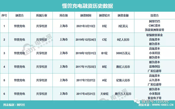 据网经社“电数宝”(DATA.100EC.CN)电商大数据库显示,此前怪兽充电累计完成6轮融资,融资总额超23亿元,涉及投资方包括小米、高瓴资本、顺为资本、软银愿景基金等。