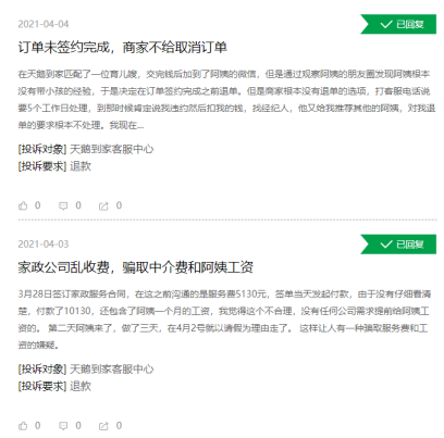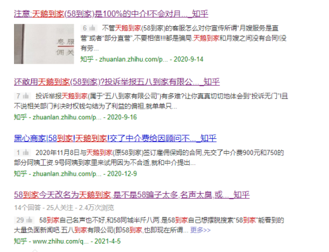 但在铺天盖地的负面消息中,可以窥之,天鹅到家并未摆脱58同城的模式窘境,上门服务的家政员质量难把关、退费机制不合理、遇到问题推卸责任、虚假宣传等问题仍在延续。