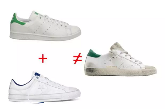 仔细看,这双鞋又不像匡威和Stan Smith的山寨二合一,它是意大利品牌Golden Goose Deluxe Brand(GGDB)的Super Star系列。