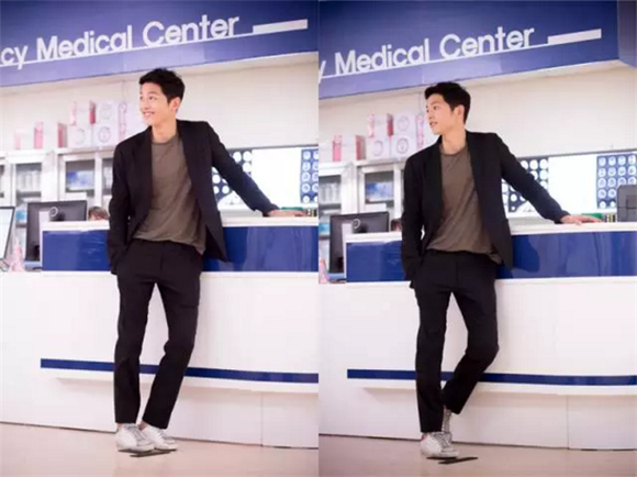 以下是《太阳的后裔》中宋欧巴脚踩时髦小球鞋的剧照和花絮,多角度欣赏。