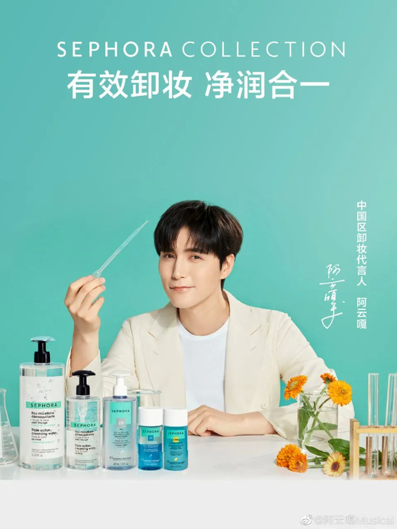 4月6日,阿云嘎成为SEPHORA COLLECTION中国区卸妆代言人。
