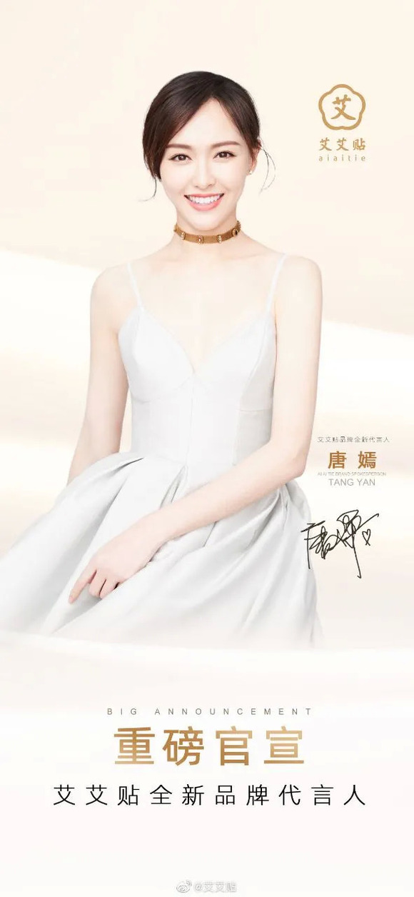 4月8日,唐嫣成为艾艾贴品牌代言人。