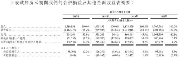 就盈利情况而言,2017年、2019年,亿腾医药还处于亏损中,分别录得亏损净额3853.8万元、2.15亿元;不过,2019年、2020年,该公司盈转亏,分别录得纯利1.73亿元、8693.9万元。