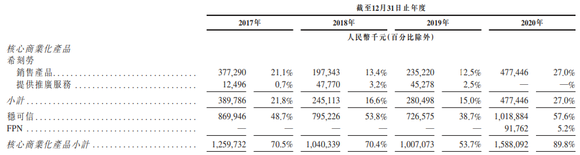 亿腾医药特别提出,公司完善的商业平台使其获得可持续的销售额及现金流入。招股书显示,2017年、2018年、2019年及2020年,该公司收入分别为17.87亿元、14.78亿元、18.75亿元及17.68亿元;收入主要来自两款抗生素产品,其中稳可信报告期内产生的收入分别为8.7亿元、7.95亿元、7.27亿元及10.19亿元,希刻劳产生的收入分别为3.9亿元、2.45亿元、2.81亿元及4.77亿元,另外刚商业化的FPN于2020年产生的收入9180万元。
