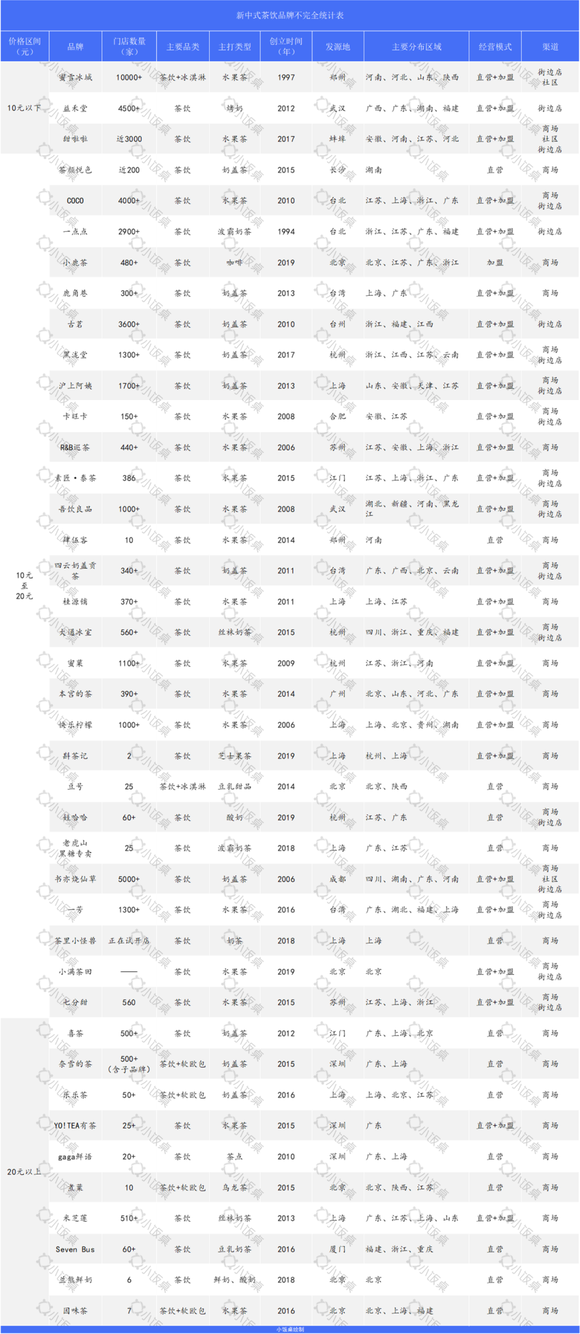 新中式茶饮品牌不完全统计,图片来源:小饭桌