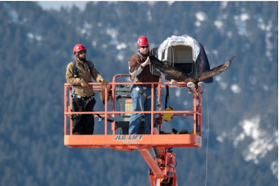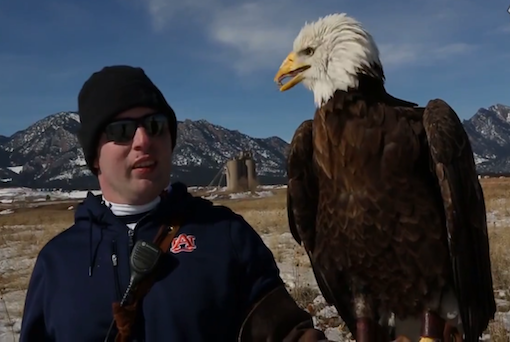 用于近期飞行试验的两只老鹰归奥本大学东南猛禽中心所有,这是一个猛禽康复中心机构。这两只老鹰并非要训练适应广泛的飞行任务,只需要从足球场的最上端急速俯冲到地面,并完成着陆。因此,研究人员相应地修改了飞行测试,在放飞之前,他们将老鹰人工带至尽可能高的地点,这样它们就能利用高度把势能转换成飞行速度。这项特性有助于科学家们研究鸟禽类的飞行轨迹。