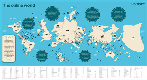 这是一幅互联网世界地图。每个国家根据其国家网络域名数量进行绘制。这张地图有很多诡异的地方,比如美国的域名数量相形见绌,甚至还不及加拿大。但更引人注目的是,地图上面积最大的国家:托克劳。