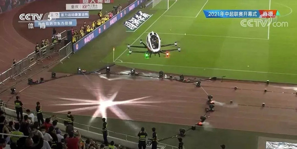 亿航智能载人飞行器现身球场